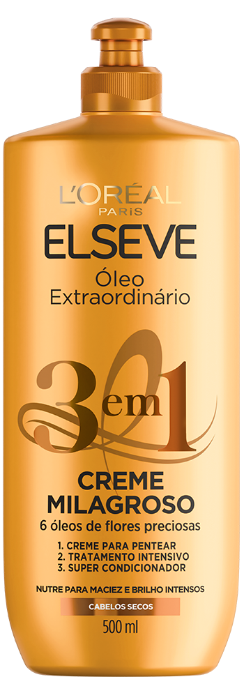 Desenvolvido com 6 óleos preciosos, o 3 em 1 de Óleo Extraordinário proporciona 6x mais brilho e preenche a fibra capilar para maior nutrição. Cabelos macios, suaves e extraordinários.
